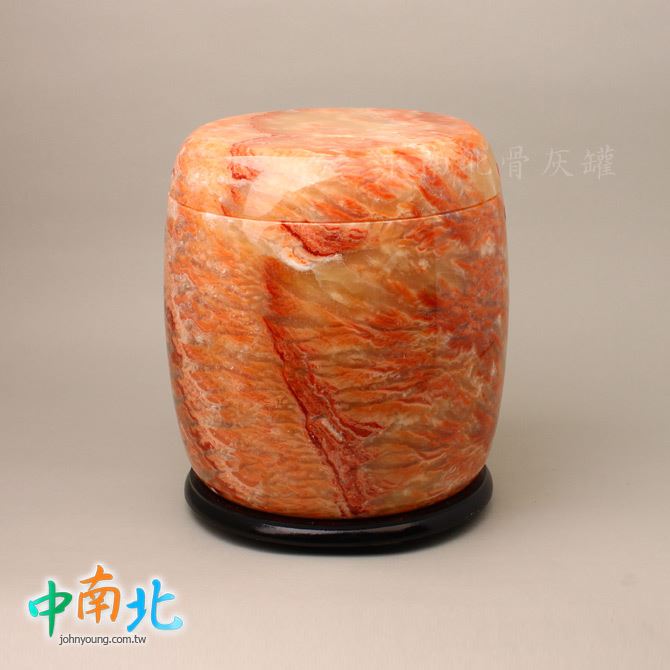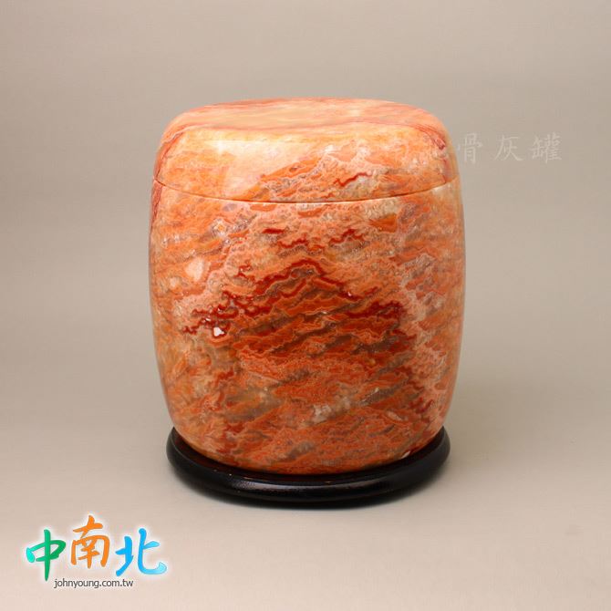 ▲骨灰罈為天然紅龍玉製作,每一只紋理與色澤皆為自然形成,獨一無二。
