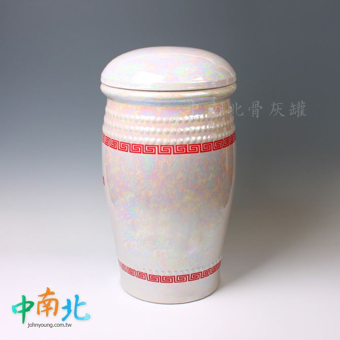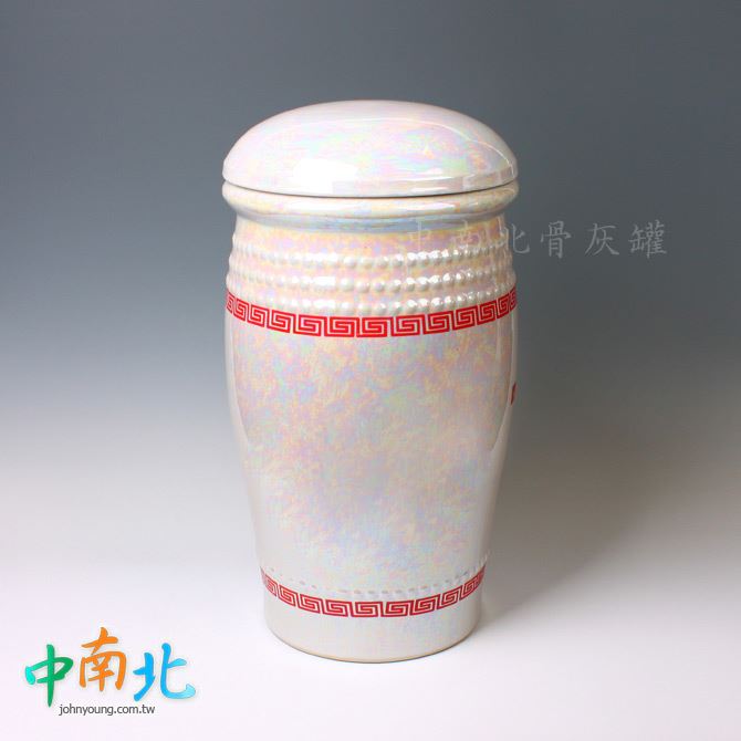 特性:以高溫燒製成型,並在表面融入釉料,以加強瓷土原本結構較為鬆散的特性,釉料可降低日後產生龜裂的可能,提升整體穩定度,陶瓷材質仍存在日久龜裂的不確定因素,需妥善安置定期檢視,以利骨骸長期保存。