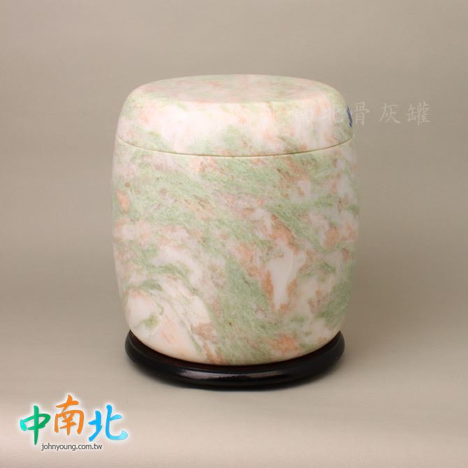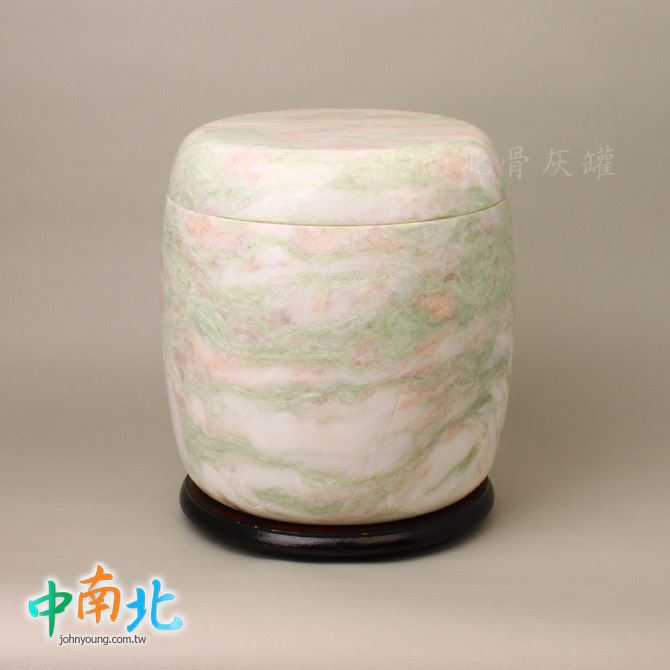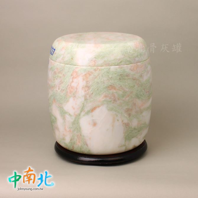 ▲骨灰罈為天然三彩翠玉製作,每一只石紋與色澤皆為自然形成、獨一無二。